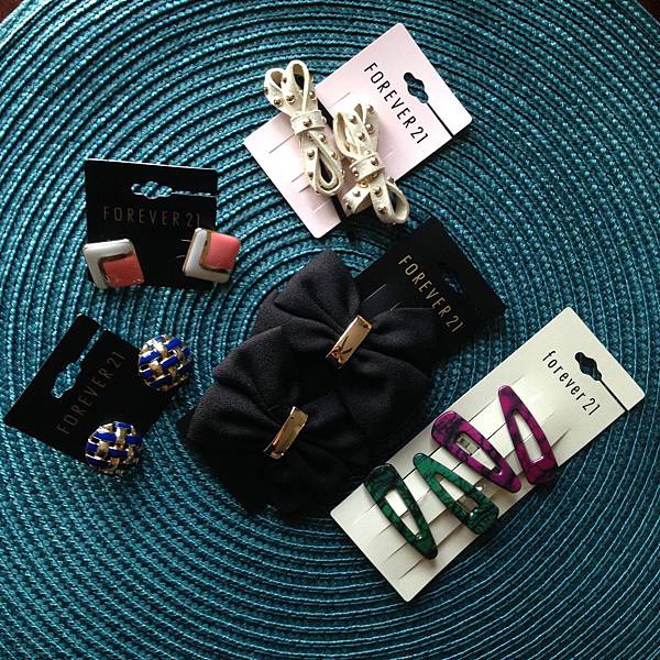 最近在續瀏海,所以瀏海半長不短的很討厭,所以一氣之下衝去forever21買了好多個髮夾,還順便帶了兩附耳環