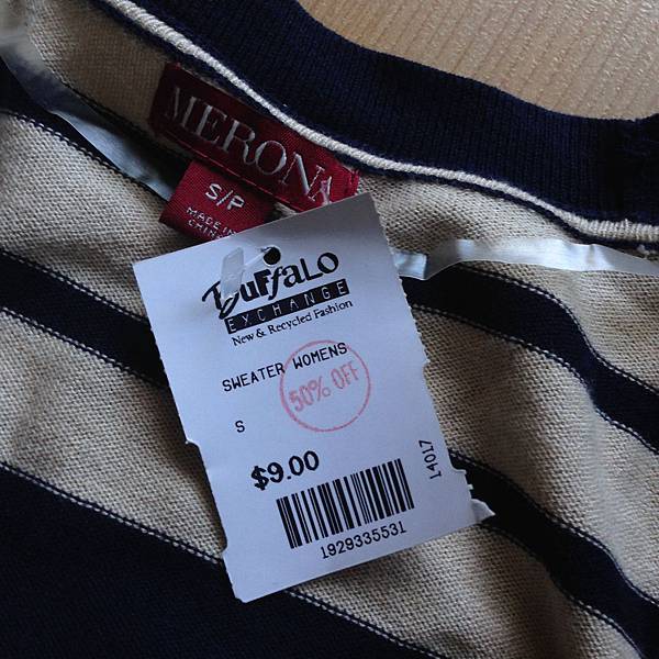 條碼上面一排數字的後三碼就是批價喔~ 差一半以上呢!以後去逛dtla, 最好一群女生約著去~