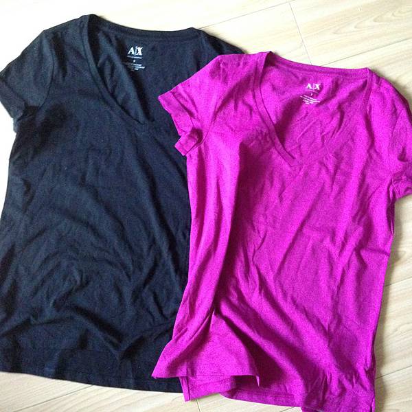 嗯哼....又是無聊的素T哈哈哈 AX剪裁很不錯,一件原價$25, 打折後$15,然後又買一送一,所以是兩件$15
